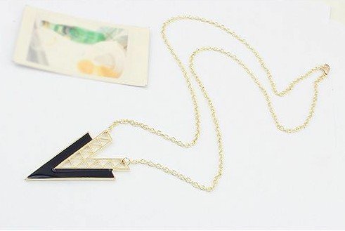 Collier Fantaisie Femme - Triangle - Métal - Or/Noir - 65 cm