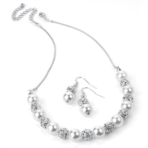 - Perle de faux argent et de cristal strass ton collier et boucles d'oreilles