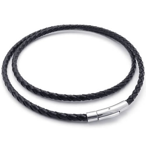 KONOV Bijoux Collier Homme - Chaîne - 40cm - Cordon - Cuir - Acier Inoxydable - pour Homme - Couleur Noir Argent - Largeur 4mm - Longueur 40cm - Avec Sac Cadeau - F21622