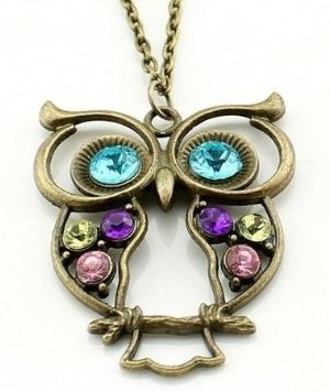 Vintage Antique Vintage Retro Art Deco style coloré découpé par hibou collier de chaîne creuse